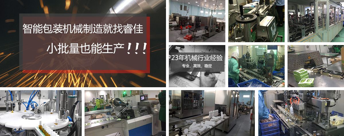 廣州市睿佳機(jī)械設(shè)備有限公司是國內(nèi)專業(yè)從事自動化包裝機(jī)械產(chǎn)品,集研發(fā)、生產(chǎn)、銷售、服務(wù)于一體的制造公司,已通過ISO9001:2008質(zhì)量體系認(rèn)證,部分系列產(chǎn)品已通過歐盟CE認(rèn)證。 經(jīng)過多年的發(fā)展,公司專業(yè)生產(chǎn):封尾機(jī),灌裝機(jī),旋蓋機(jī),貼標(biāo)機(jī),包裝機(jī),輸送機(jī),噴碼機(jī),灌裝生產(chǎn)線等機(jī)械設(shè)備。企業(yè)以開發(fā)生產(chǎn)包裝機(jī)械和訂做特殊包裝機(jī)械為主,所生產(chǎn)的包裝機(jī)械在同行和客戶中都得到一致的贊賞,以高技術(shù)和穩(wěn)定的質(zhì)量遠(yuǎn)銷東南亞和歐美。在國內(nèi),也成為多家知名藥廠、食品廠、化妝品廠指定使用產(chǎn)品。 睿佳機(jī)械:“想客戶之所想,急客戶之所急”既是睿佳對廣大客戶的承諾也是睿佳的宗旨,睿佳將與時(shí)代同步、銳意進(jìn)取,以更優(yōu)質(zhì)的服務(wù)回報(bào)廣大客戶對睿佳的信賴和支持。